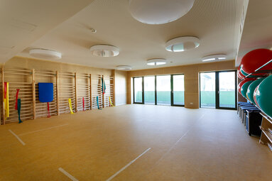 Die Reha-Einrichtung der APR befinden sich auf zwei Etagen (Erdgeschoss und 1. Stock) und ist barrierefrei zugänglich. Der Therapiebereich ist freundlich und einladend eingerichtet, viel natürliches Licht sorgt für ein freundliches Ambiente. Es bestehen Gruppenräume für Psychotherapie und Schulungen, ein Sportraum, Gruppenräume der Ergotherapie sowie Einzeltherapieräume. Für alle Patient*innen steht ein Garderobenbereich mit persönlich verschließbarem Spind zur Verfügung.