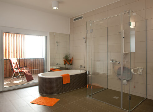 Alle Zimmer in Haus 1 und 2 (außer einem) verfügen über einen Balkon und freien Panoramablick. Beide Häuser sind ausgestattet mit Gruppen- und Einzeltherapieräumen für Physio-, Ergo- und Kreativtherapie sowie verschiedene Formen der Psychotherapie.